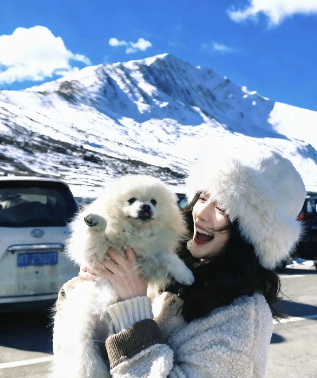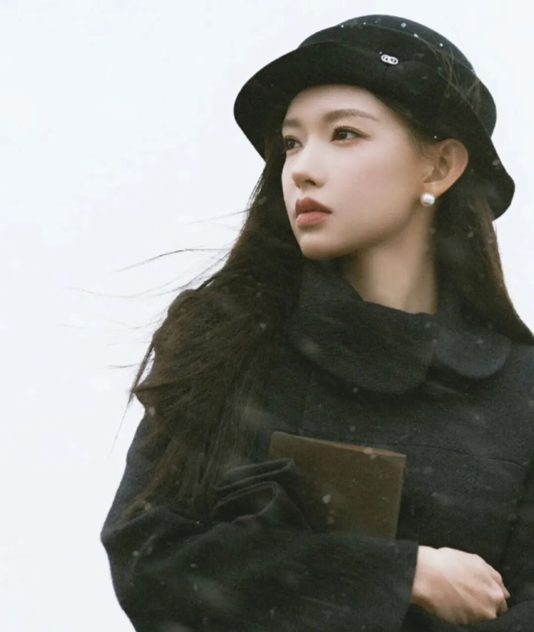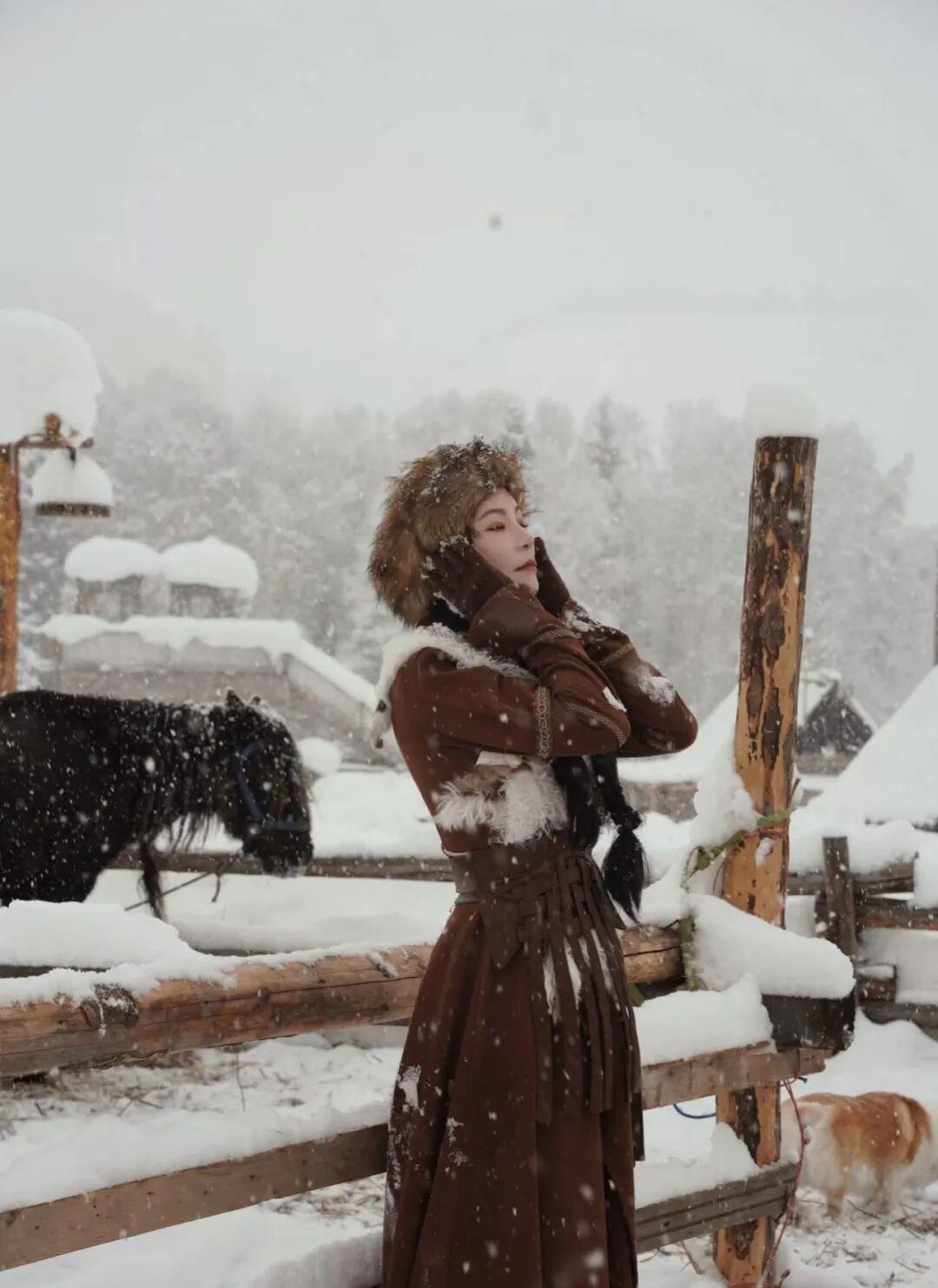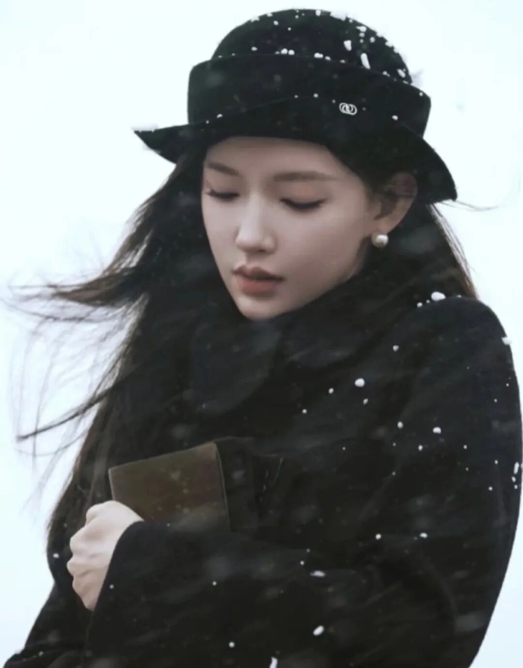 之远景潇这一组漫天雪花中令嫒帽配大衣,妥妥的回国巨室令嫒呀。
