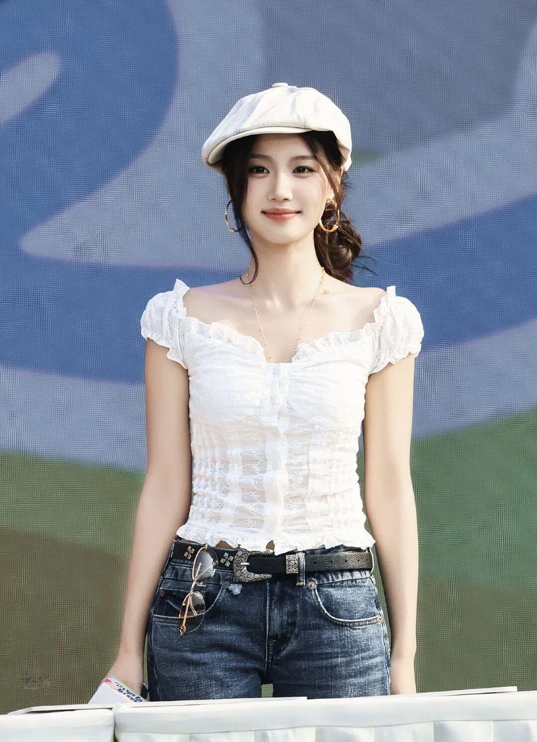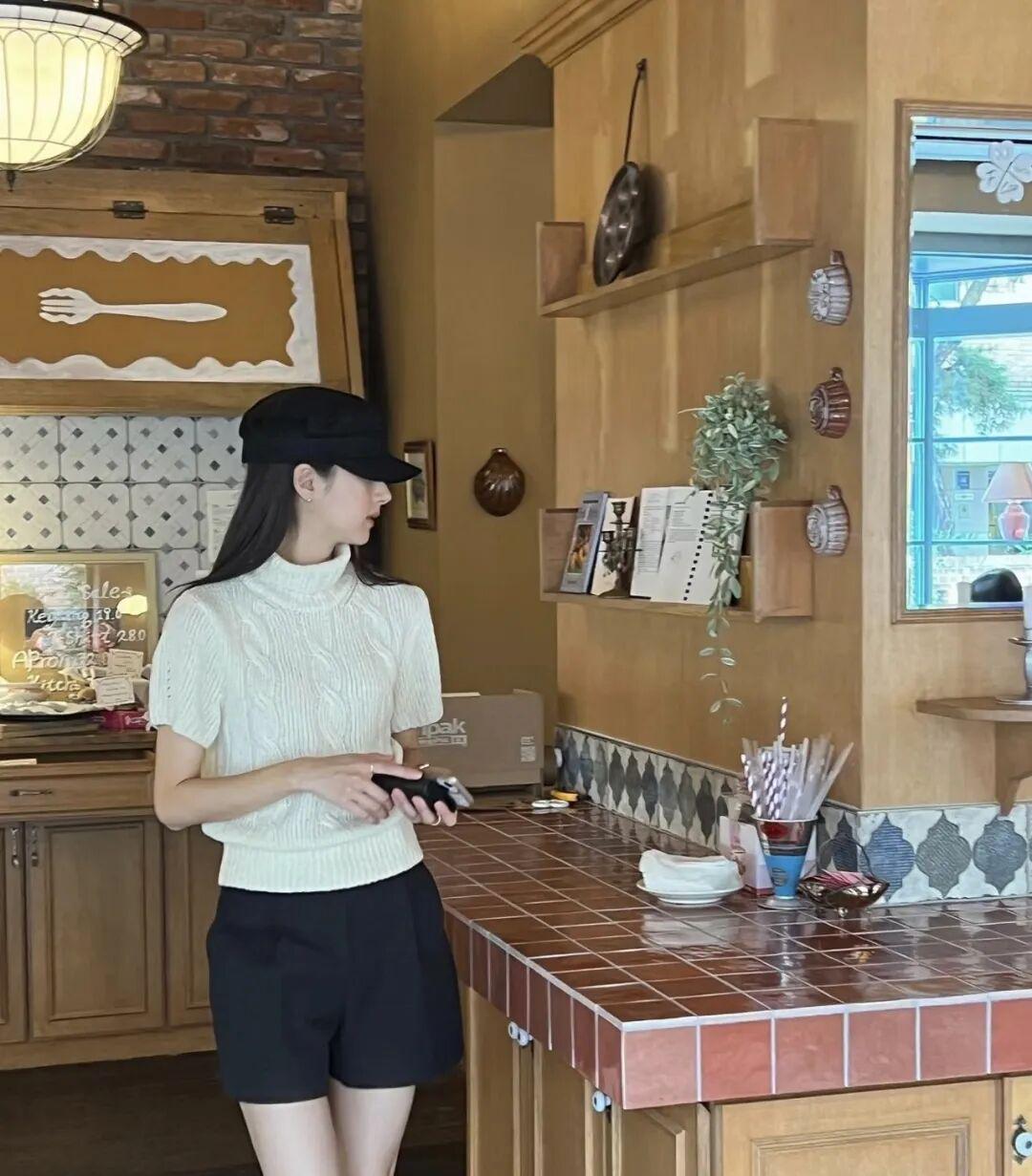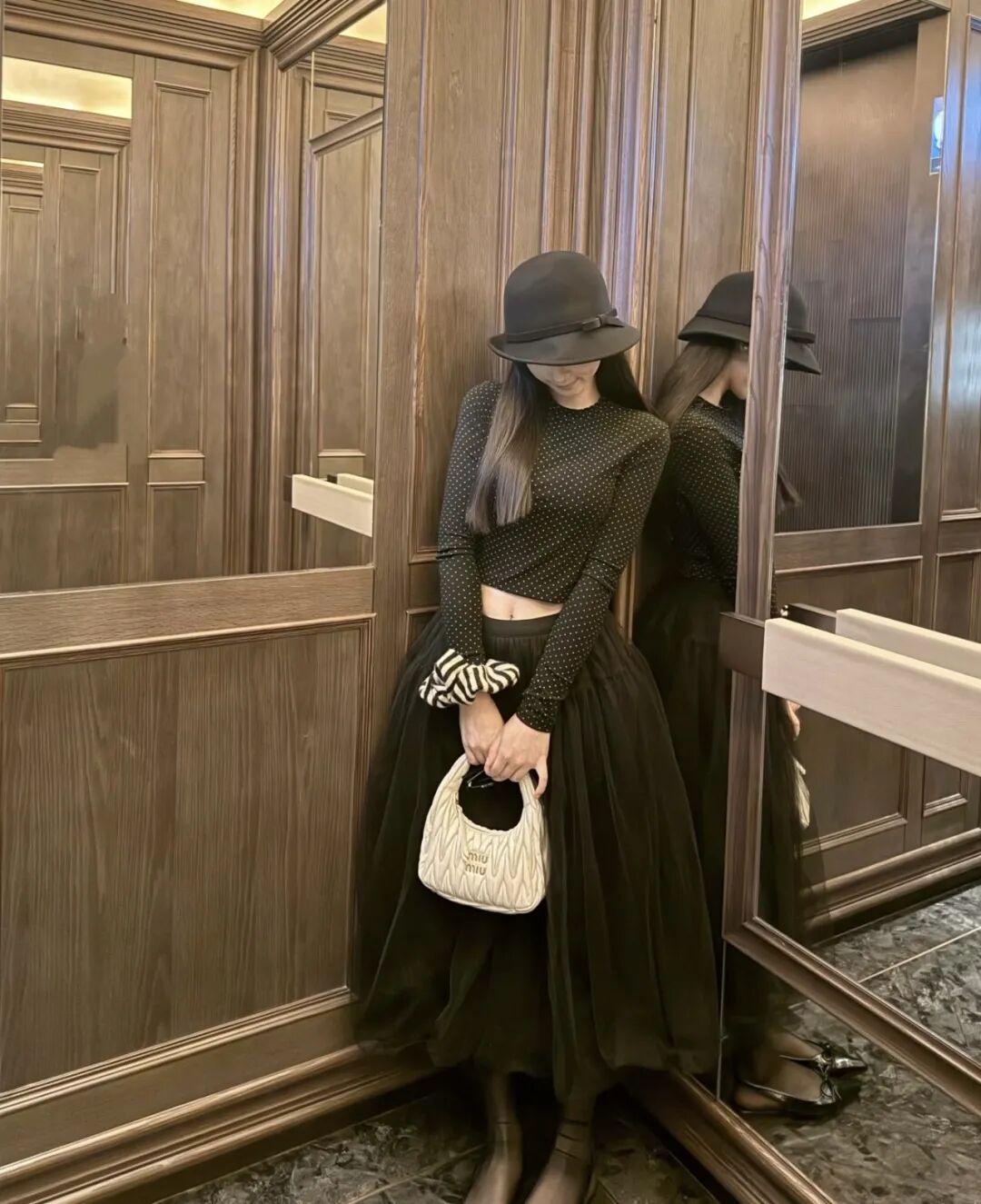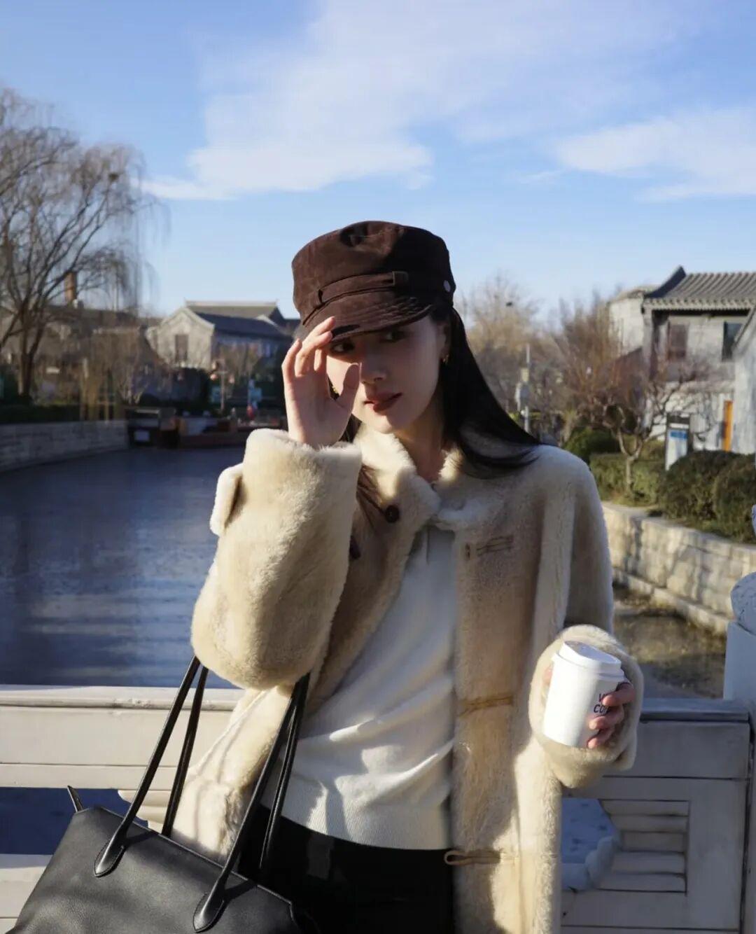 易梦玲也蛮爱这种帽子的,搭配她的标记性氛围感大鬈发,中庸得刚刚好。