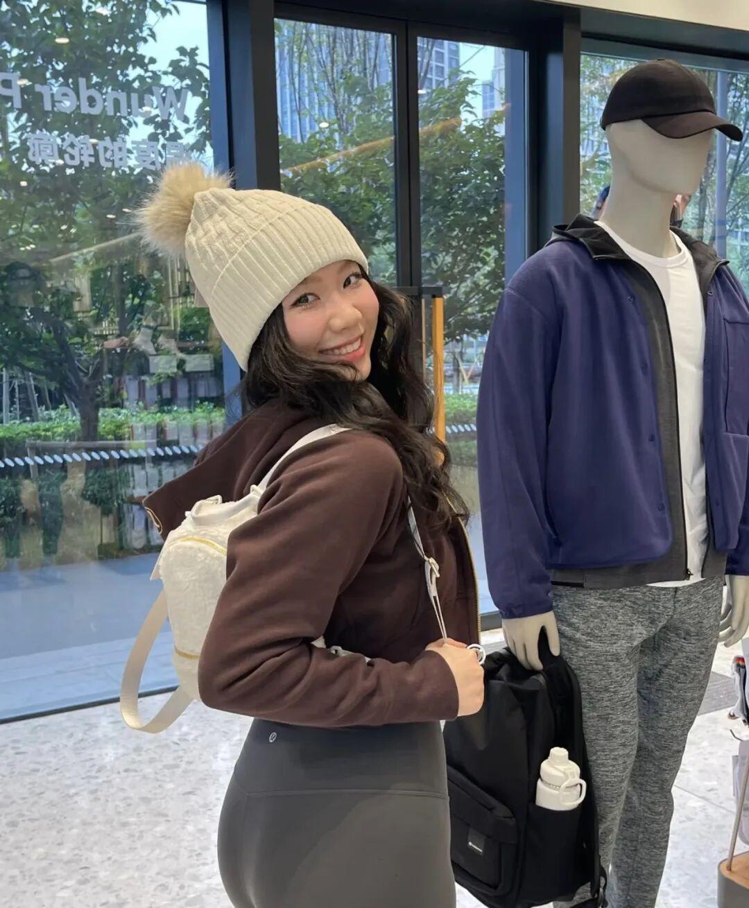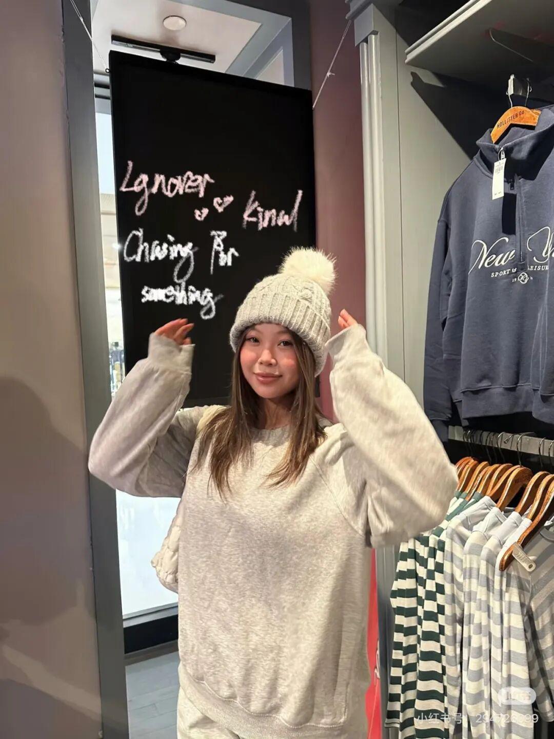 本年lulu和快消品牌holister皆出了那种粉白色系的古道绒毛球帽,火到断货那种,超等显嫩显肤白的,上身秒变18岁小留学生。