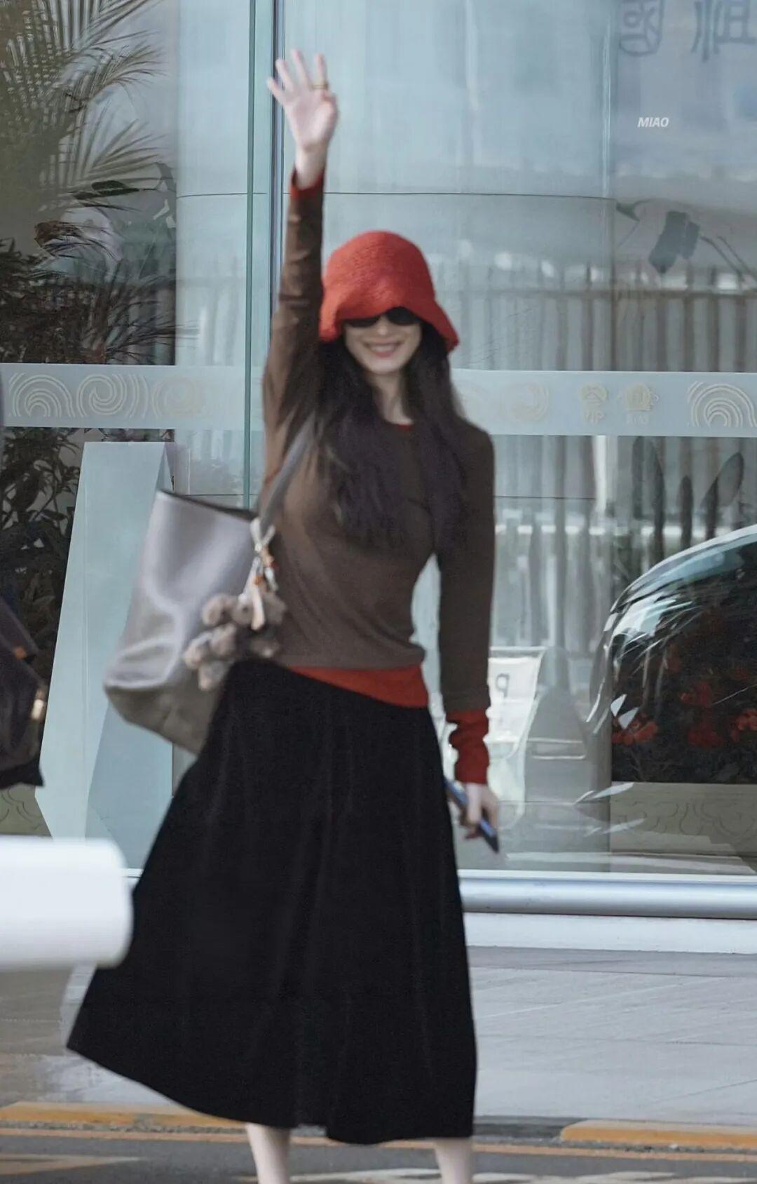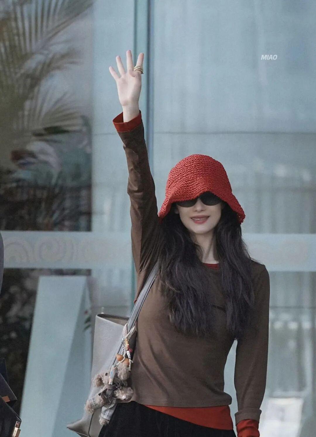欧欧之前发这组倪妮机场穿搭的时候,就有姐妹种草了这顶红色古道渔人帽,果然为统共造型增色不少哎~