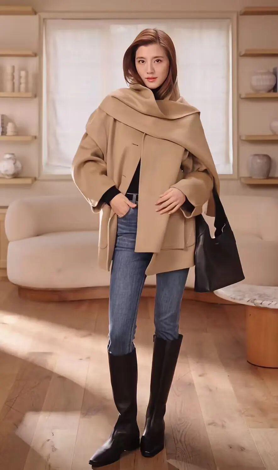 吴千语还强调,这双靴子不仅皮质细腻,靴筒的容量也很足,在冬天搭配牛仔裤等长裤很OK。难怪会成为她马上鞋类销量的Top 1~