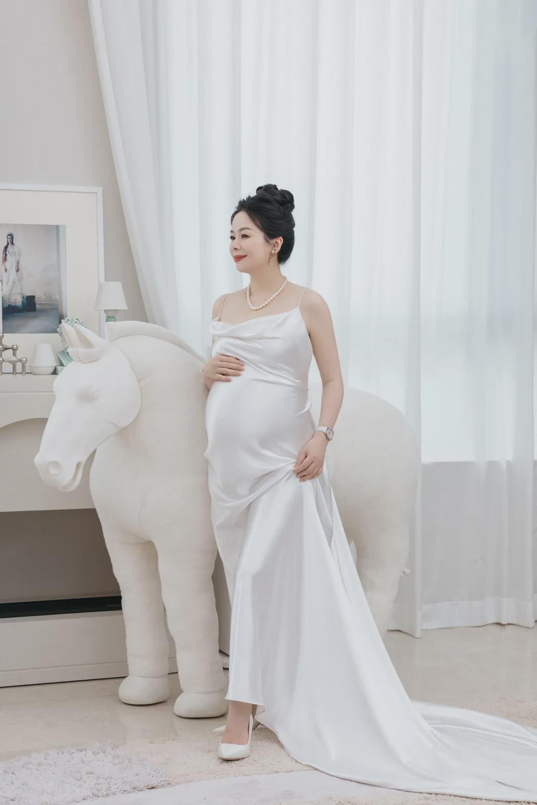 之前拍孕照时,我也专门挑选了7or9,白色真丝质感十分高档,上脚也很舒心,关于孕期姆妈来说,拍照时不错好意思好意思的也不错很舒心~