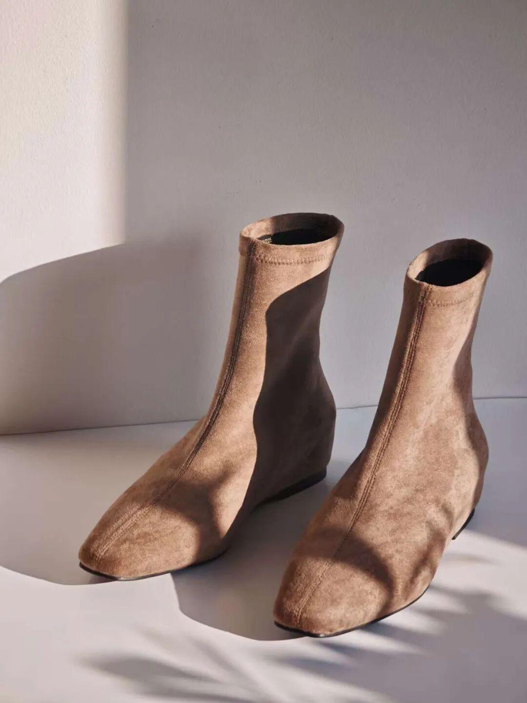 最横蛮的是,鞋跟处藏着“隐形的5cm内增高跟”。这个蓄意颠倒奥秘,看着像平底靴,但穿进去霎时拔高,玄虚立马拉长,却实足莫得穿高跟鞋的紧绷感。