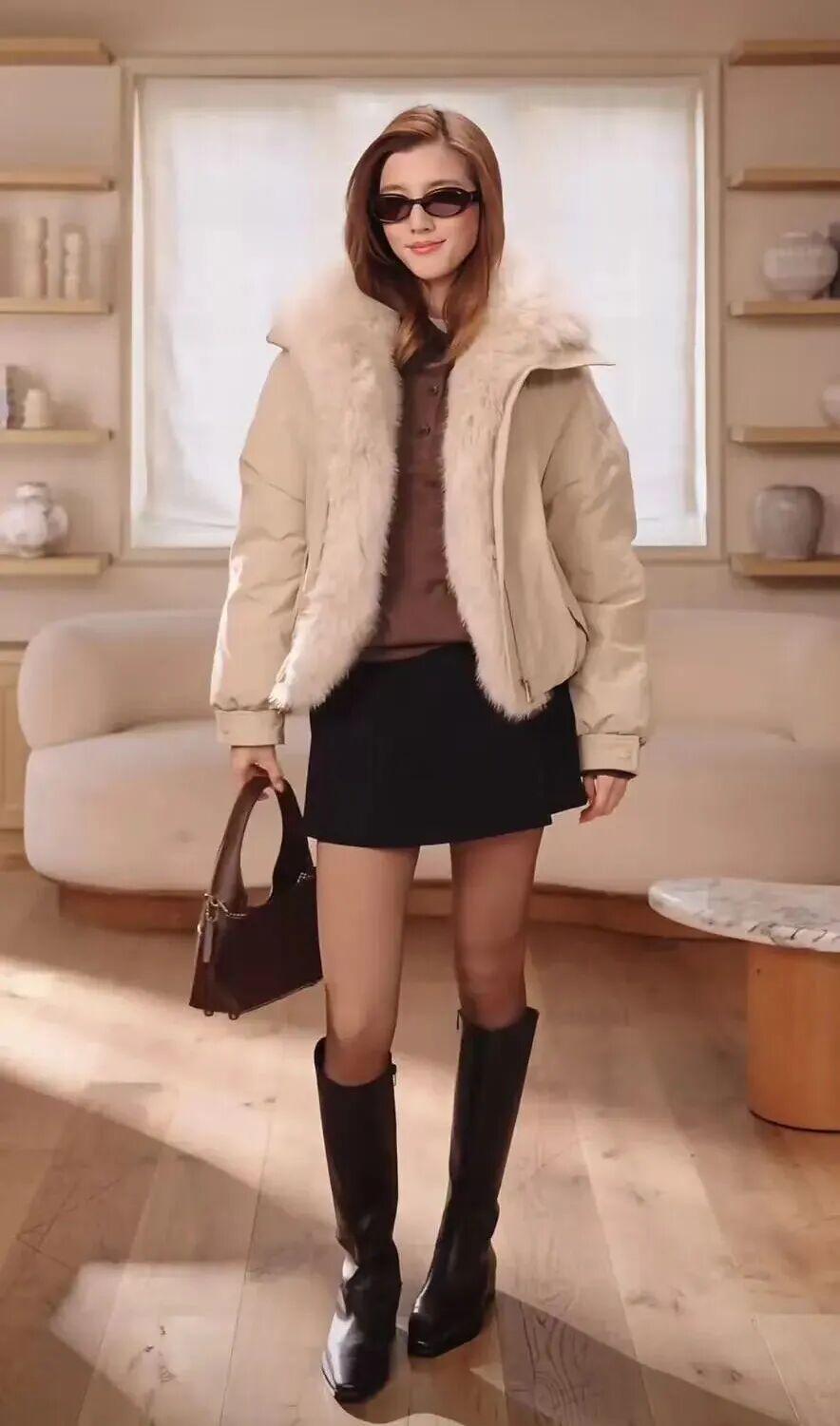 在陪老公去马场时,她秀出我方的7or9长靴,搭配厚厚的Moncler羽绒服,温顺又应景。